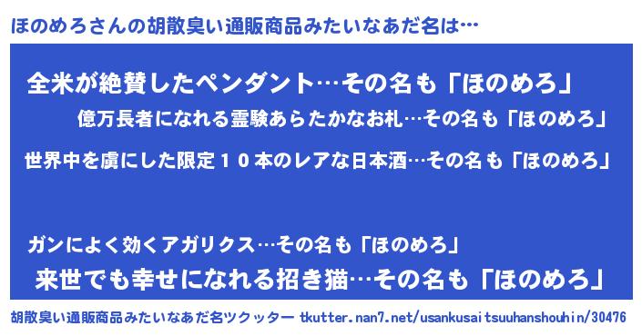 | ヘコむあだ名 | 『ほの太郎』『ほのめろ(遠い目)』 |