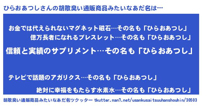 | 意味不明あだ名 | 『とにかく怪しいひらおあつし』 |