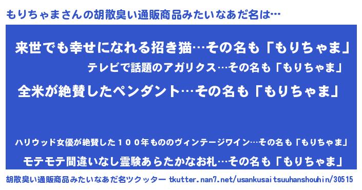 | ヘコむあだ名 | 『もりぷりん』『もりちゃま(笑)』 |