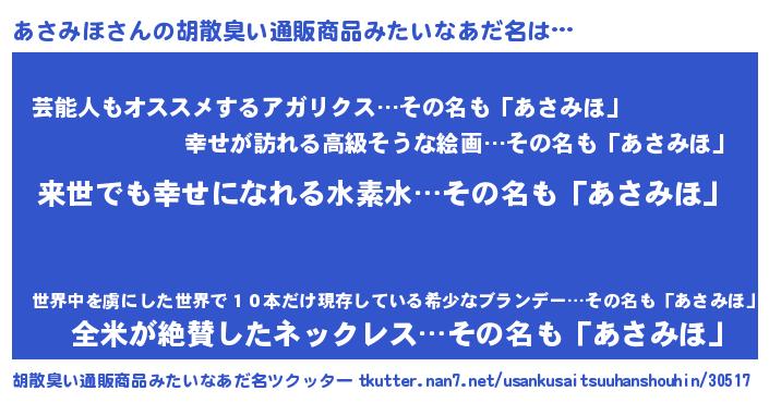 | 意味不明あだ名 | 『永久保存あさみほ』『自称あさみほ』 |
