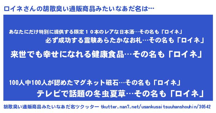 | ヘコむあだ名 | 『ロイネ(苦笑)』『ロイっふぃ~』 |