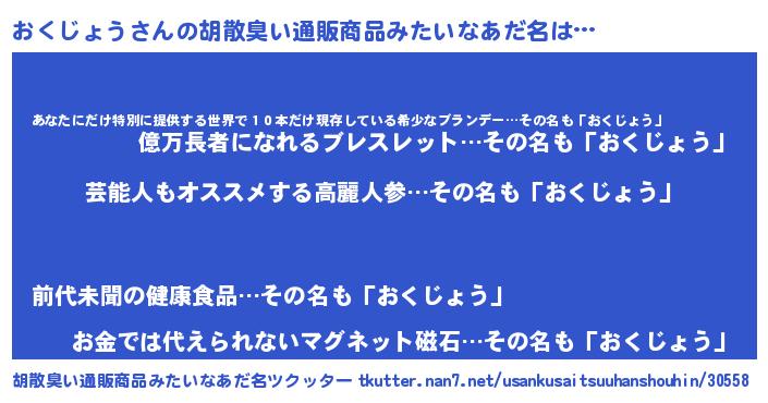 | 欧米人風あだ名 | 『アンジェラ・おくじょう』 |
