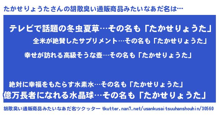 | 意味不明あだ名 | 『たかせりょうたフォーエバー』 |