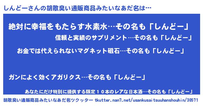 | ヘコむあだ名 | 『しんどー(小並感)』『しんを』 |