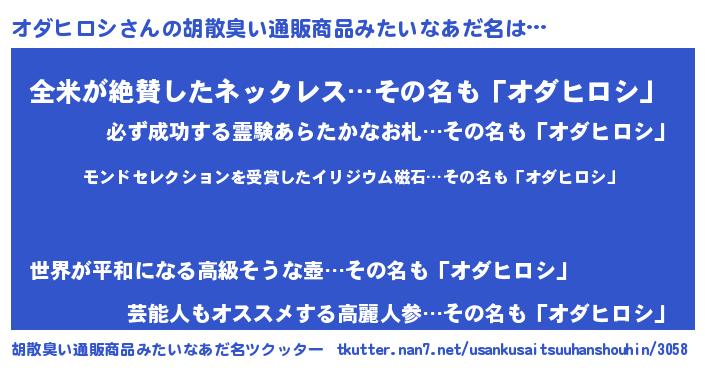 | ヒーロー風カッコイイあだ名 | 『天空の使者オダヒロシ』『天弓騎士オダ』 |