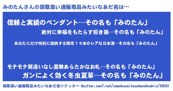 | 意味不明あだ名 | 『住所不定無職みのたん(59歳)』 |