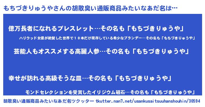 | 意味不明あだ名 | 『自称もちづきりゅうや』 |