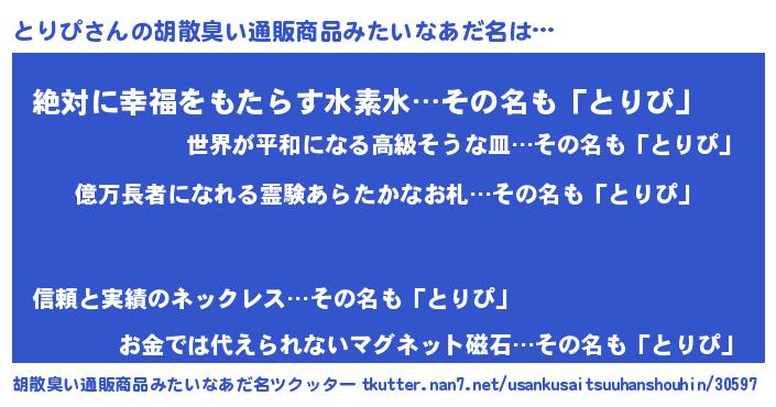 | ヘコむあだ名 | 『とりっふぃ~』『とりぴ(遠い目)』 |