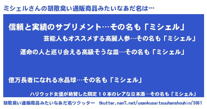 | 意味不明あだ名 | 『ミシェルフォーエバー』『自称ミシェル』 |