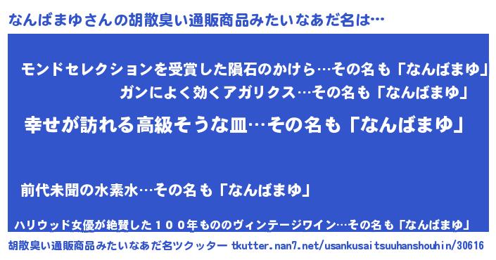 | 欧米人風あだ名 | 『なんばまゆクリステル』 |