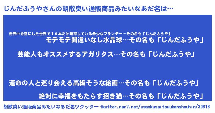 | ヘコむあだ名 | 『じんだふうや(爆)』『じんもー』 |