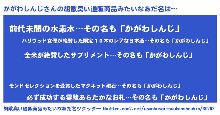 | 肩書あだ名 | 『かがわしんじ大佐』『かがわしんじ先生』 |