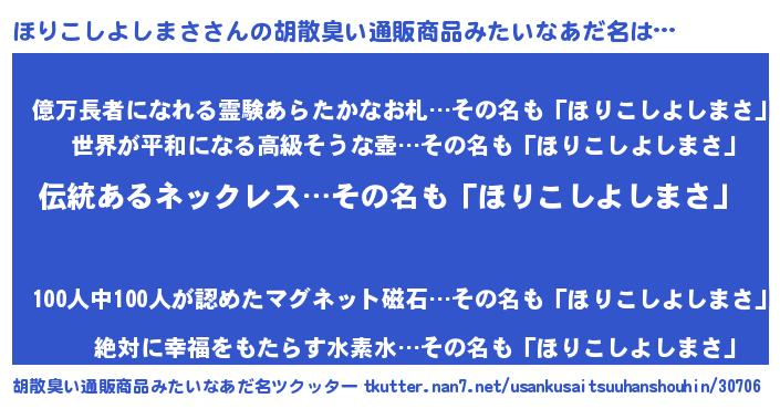 | 欧米人風あだ名 | 『ウサインほりこしよしまさ』 |