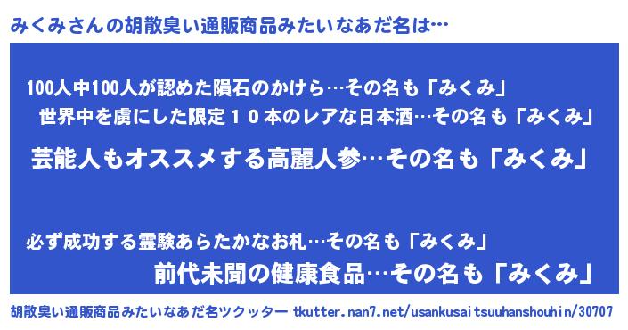 | 意味不明あだ名 | 『自称みくみ』『眠気覚ましガムみくみ味』 |