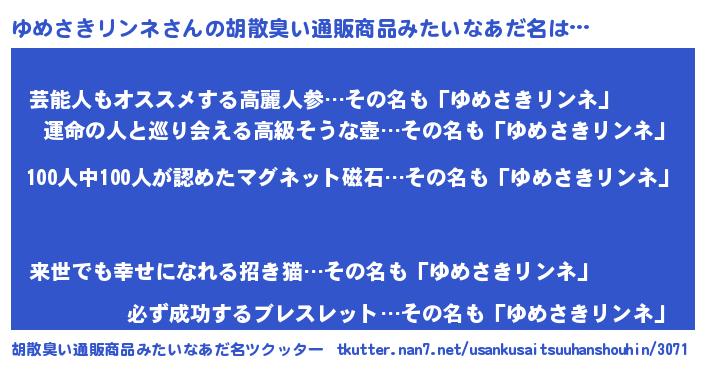 | ヘコむあだ名 | 『ゆめにー』『レバニラ』『ゆめを』 |