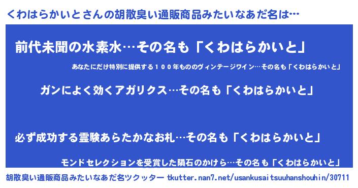 | 意味不明あだ名 | 『自称くわはらかいと』 |