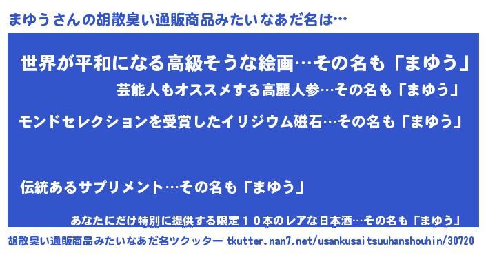 | ヒーロー風カッコイイあだ名 | 『天空の使者まゆう』『仮面マユダー』 |