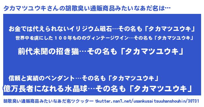 | ヘコむあだ名 | 『タカマツユウキ(笑)』『タカにゅー』 |