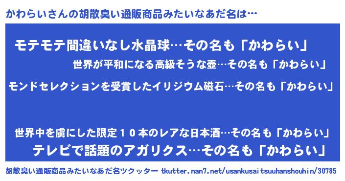 | ヒーロー風カッコイイあだ名 | 『慈愛の使者かわらい』『仮面カワダー』 |