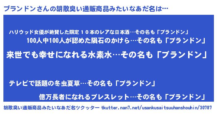 | ヘコむあだ名 | 『ブランドン(震え声)』『ブラにゅー』 |