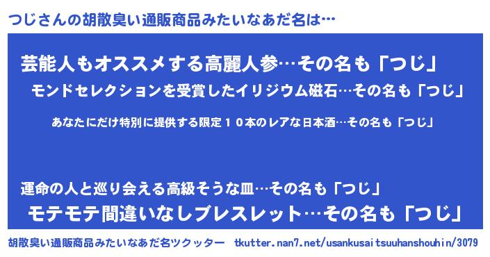 | 男性向けラノベタイトル風あだ名 | 『この素晴らしい世界につじを!』 |