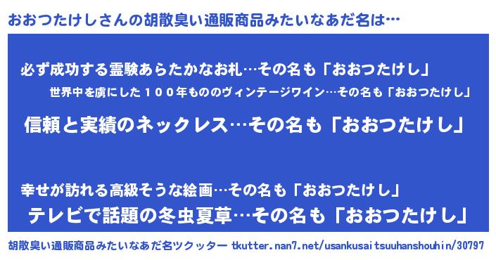 | 意味不明あだ名 | 『とにかく怪しいおおつたけし』 |