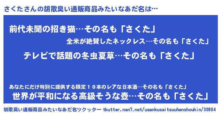 | 意味不明あだ名 | 『自称さくた』『永久保存さくた』 |