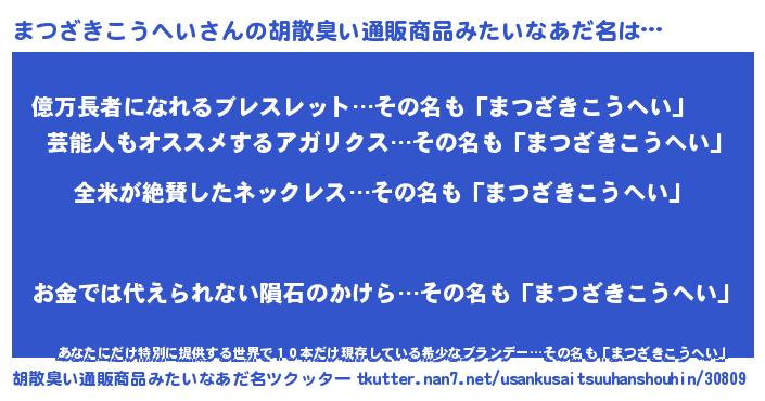 | 意味不明あだ名 | 『とにかく怪しいまつざきこうへい』 |