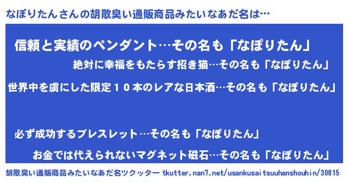 | ヘコむあだ名 | 『なぽ太郎』『なぽりたん(小並感)』 |