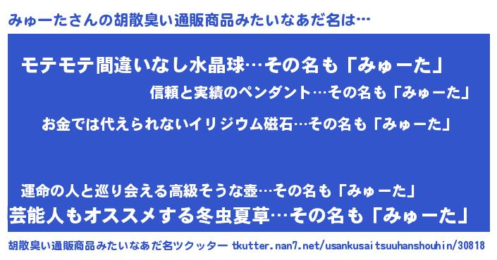 | ヘコむあだ名 | 『みゅもー』『みゅ太郎』『酢こんぶ』 |