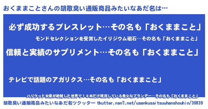 | 欧米人風あだ名 | 『ウサインおくままこと』 |