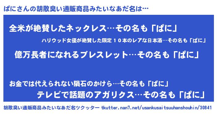 | 意味不明あだ名 | 『ペロリンぱに』『とにかく怪しいぱに』 |
