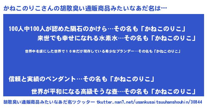 | 意味不明あだ名 | 『住所不定無職かねこのりこ(89歳)』 |