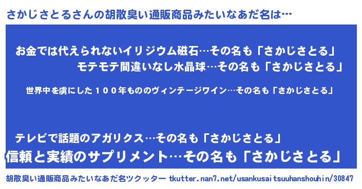 | ヒーロー風カッコイイあだ名 | 『仮面サカダー』『魔戒騎士サカ』 |