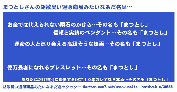 | ヒーロー風カッコイイあだ名 | 『ウルトラまつとしマン』『仮面マツダー』 |