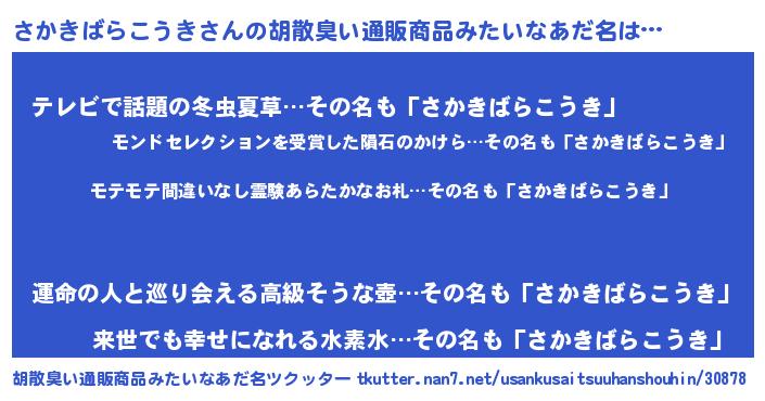 | ヘコむあだ名 | 『さかっふぃ~』『さかきばらこうき(苦笑)』 |