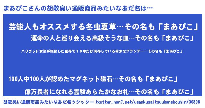 | 意味不明あだ名 | 『住所不定無職まあぴこ(74歳)』 |