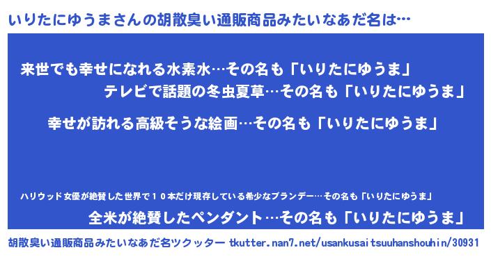 | 意味不明あだ名 | 『いりたにゆうまフォーエバー』 |