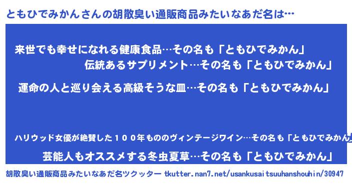 | ヘコむあだ名 | 『酢こんぶ』『ともひでみかん(震え声)』 |