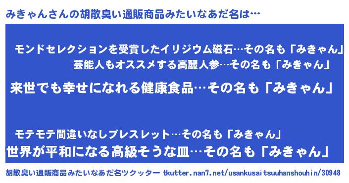 | 伝説のあだ名 | 『古より伝わる暗殺者みきゃん』 |