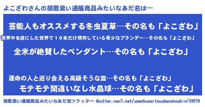 よこざわさんの胡散臭い通販商品みたいなあだ名をツクッター!
