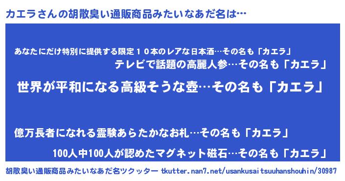 | ヘコむあだ名 | 『なまこ酢』『カエにー』『カエお』 |