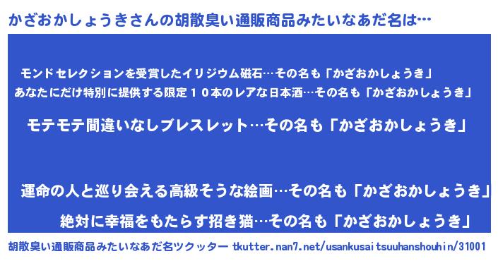 | ヘコむあだ名 | 『かざふぇ~』『かざおかしょうき(震え声)』 |