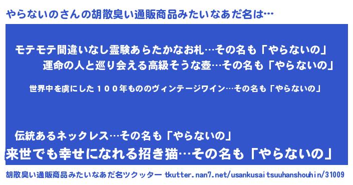 | ヘコむあだ名 | 『やらにー』『やらないの(遠い目)』 |