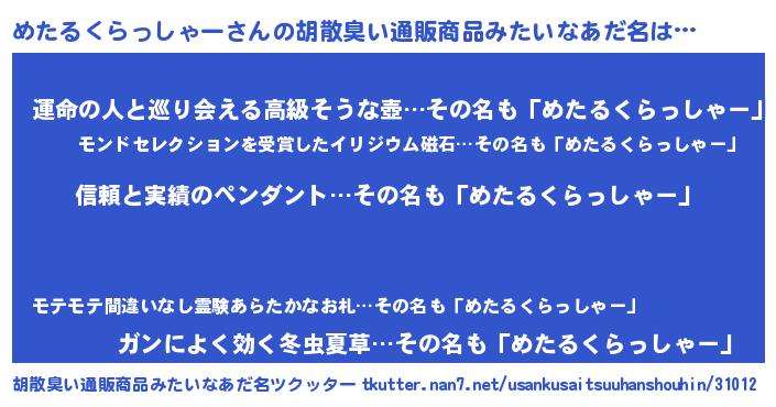 | 欧米人風あだ名 | 『ウサインめたるくらっしゃー』 |