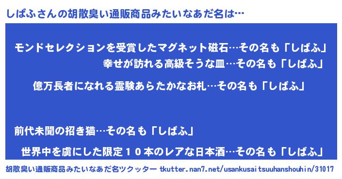 | ヘコむあだ名 | 『しばっふぃ~』『酢こんぶ』 |