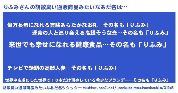 | ヘコむあだ名 | 『りふみ(笑)』『りふもー』『豆乳』 |