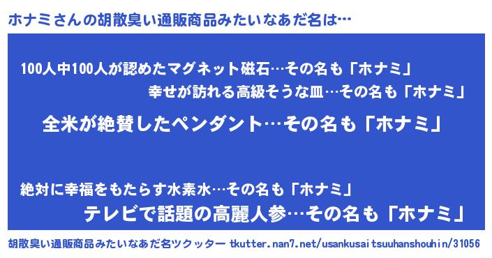 | ポケモン風あだ名 | 『ホナゴンZ』『ヒホナミ』 |