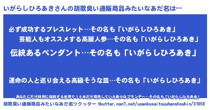 | 意味不明あだ名 | 『とにかく怪しいいがらしひろあき』 |