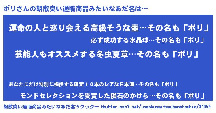 | ヘコむあだ名 | 『レバニラ』『ボリもー』『ボリ太郎』 |